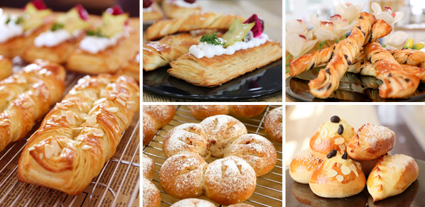 丹麦面包:牛角面包、丹麦黄桃面包、南瓜手撕包、手撕面包等。