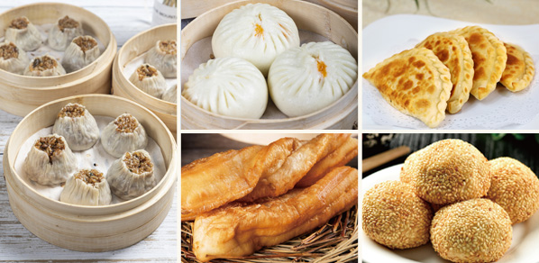 中西式点心:芝麻汤圆、蛋黄酥、提褶包、烧麦、月牙蒸饺、