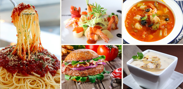 意面:意大利番茄汁意面、意式肉酱面、意大利蛋黄奶油面等。